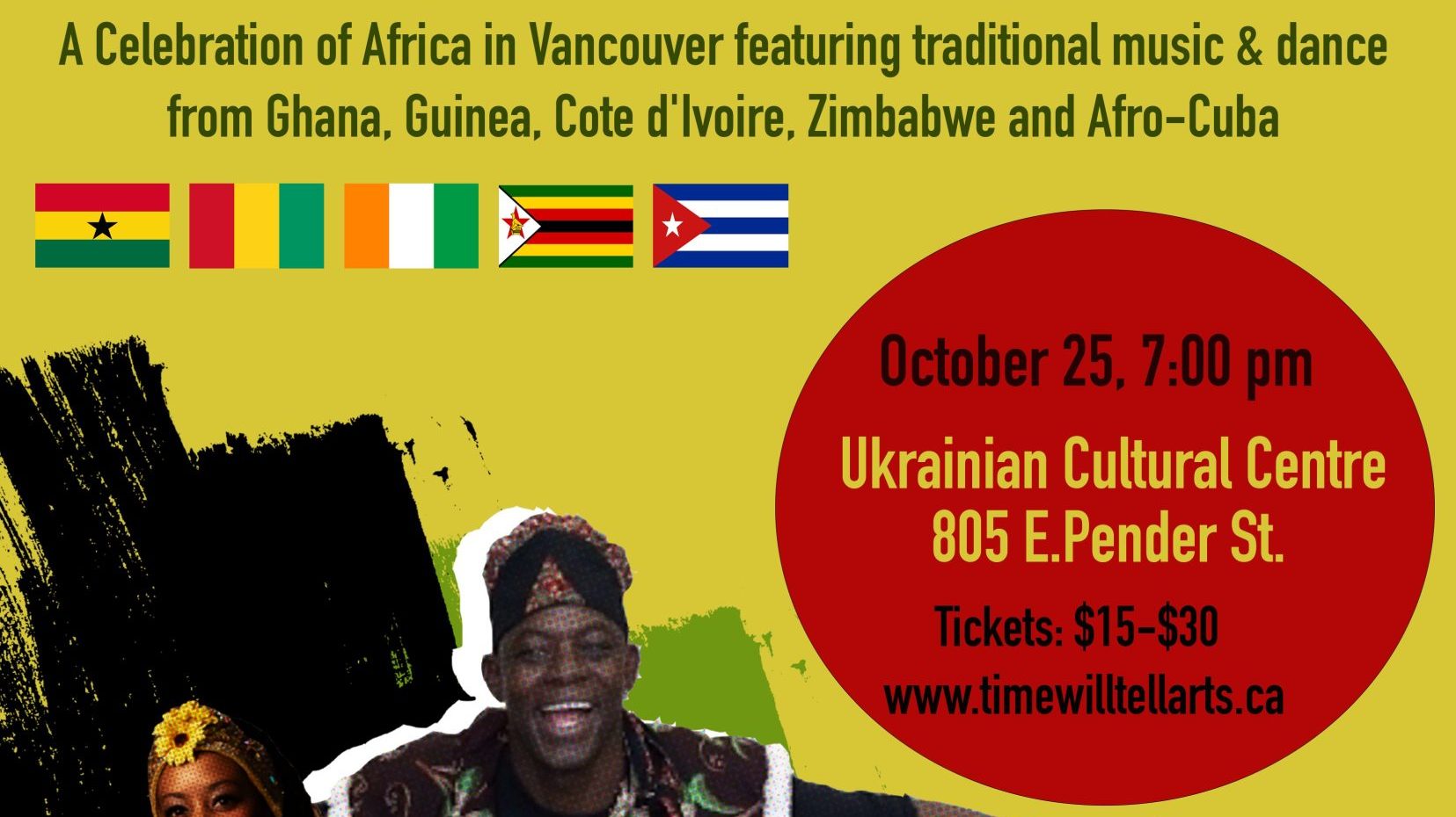 Experience the heartbeat of Africa at VanAfrica, a vibrant celebration of rhythm, movement, and culture led by some of Vancouver’s premier traditional African drummers, dancers and instrumentalists on October 25 at the Ukrainian Hall, 805 E Pender Street, Vancouver. Presented by Time Will Tell Arts Society, the evening features a powerful lineup of artists who will bring the traditions of Ghana, Guinea, Côte d’Ivoire, Zimbabwe, and guests from Afro-Cuba. Beyond drums and dance, intimate and sensitive instruments such as the mbira and kora will also be featured.