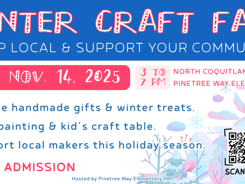 Support local this holiday season at the Winter Craft Fair in North Coquitlam at Pinetree …